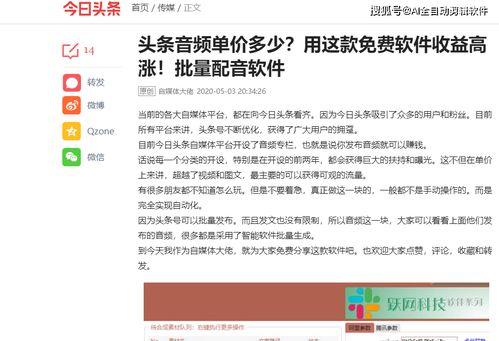 亲爱的读者们,你是否曾在闲暇时光里,被那些动听的声音所吸引?你是否想过,自己也能成为那个传递声音的人?今天,就让我们一起揭开头条号做音频的神秘面纱,看看在这条路上,我们能否收获丰厚的收益。